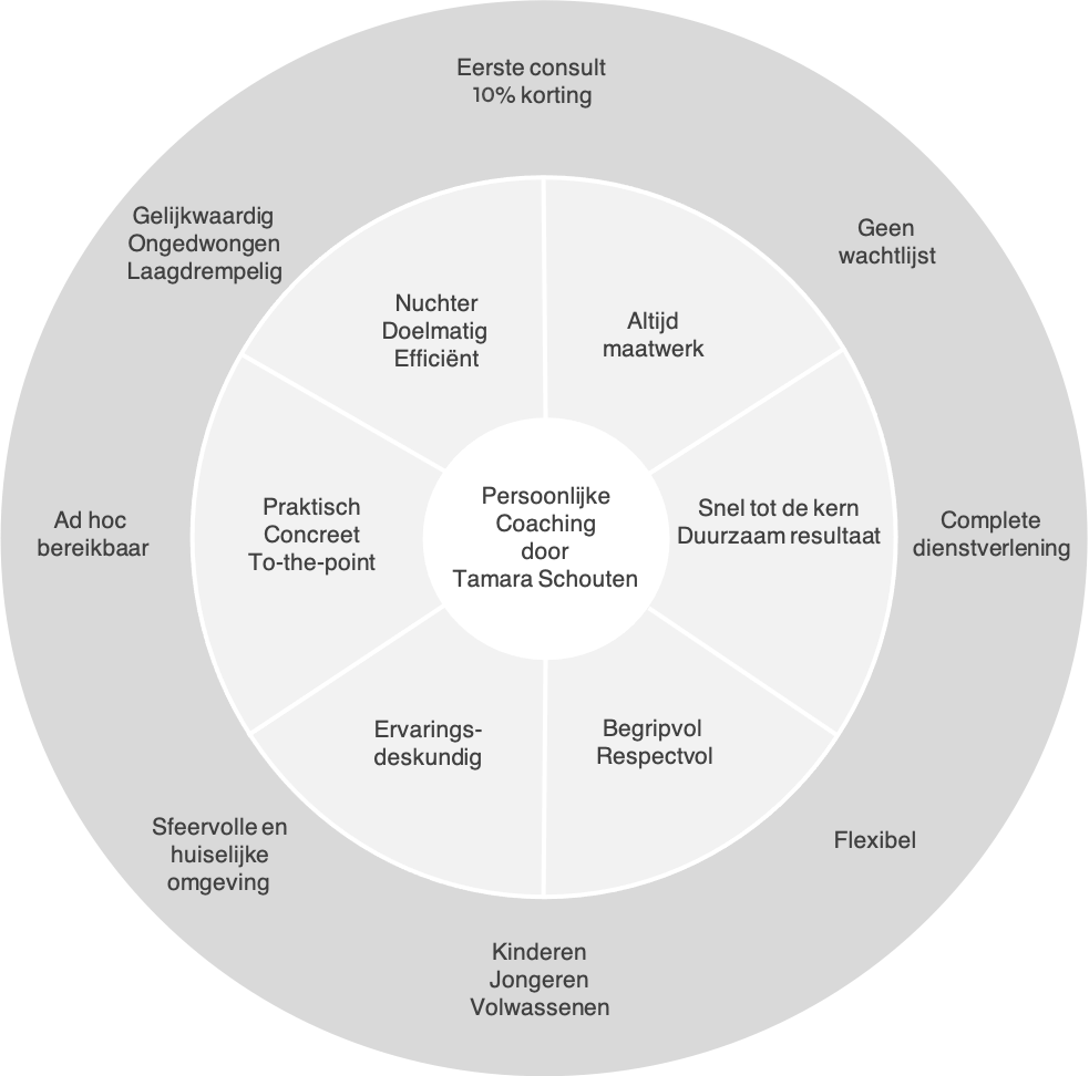 Ik stem mijn werkwijze af op jouw behoefte. Dus geen standaard methode, maar maatwerk. Dit werkt het meest effectief en efficiënt.